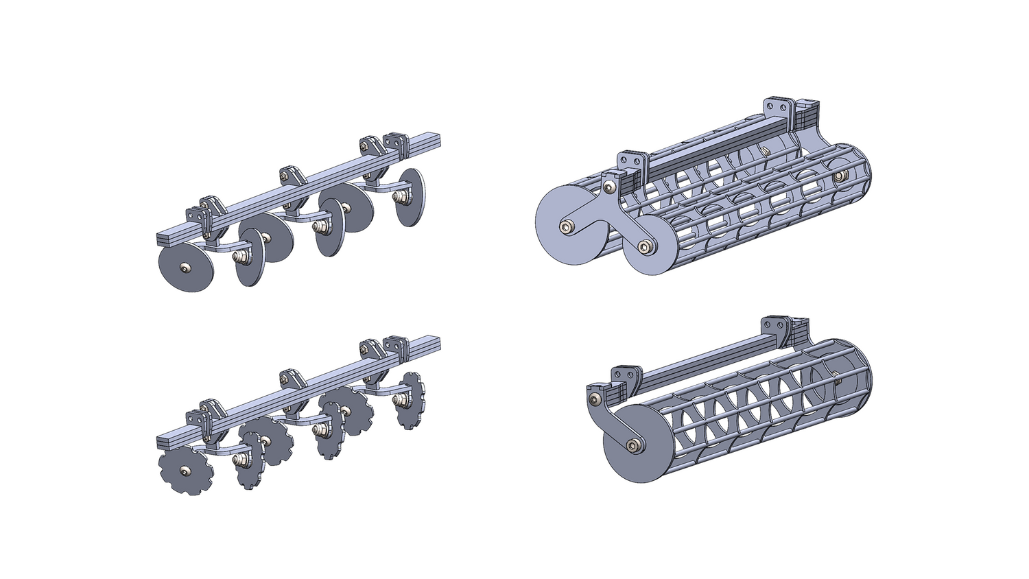 (Optional) It is possible to add a rear mechanism to the cultivator, which allows the attachment of additional elements and thus extends the cultivator's capabilities. We have a short version for one extension and a long version for two extensions.